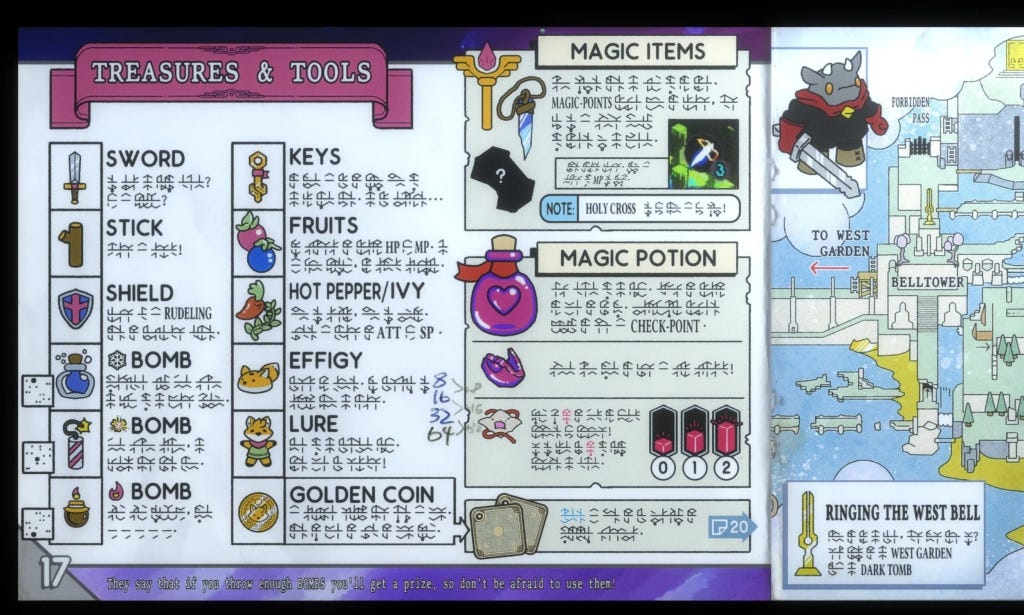 Part of how you figure out what you need to do and how to progress in the game, is you find pages of a book, stylized to look like a game manual. This is honestly the most addicting and fascinating part of the game. Hunting down pages and figuring out what you need to do and where you need to go. You have some abilities that are available at the start, but you have no idea they exist until you find a page that lays it out for you. This is the mechanic that makes me feel like a kid again. Suddenly I'm in my living room in 1997, wearing my Ninja Turtle pajamas and trying to play a game I know nothing about without reading the manual first. I finally get frustrated, take out the manual, and realize I was approaching a situation totally wrong. Even if the manual is in this lost language, they still give you everything you need to figure it out.